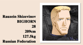 HAMLET突入部隊のメンバー。元プロバスケットボーラーで、運動神経、体力共に優れたものを持っているが、その体つきに似合わず性格はおとなしめ。